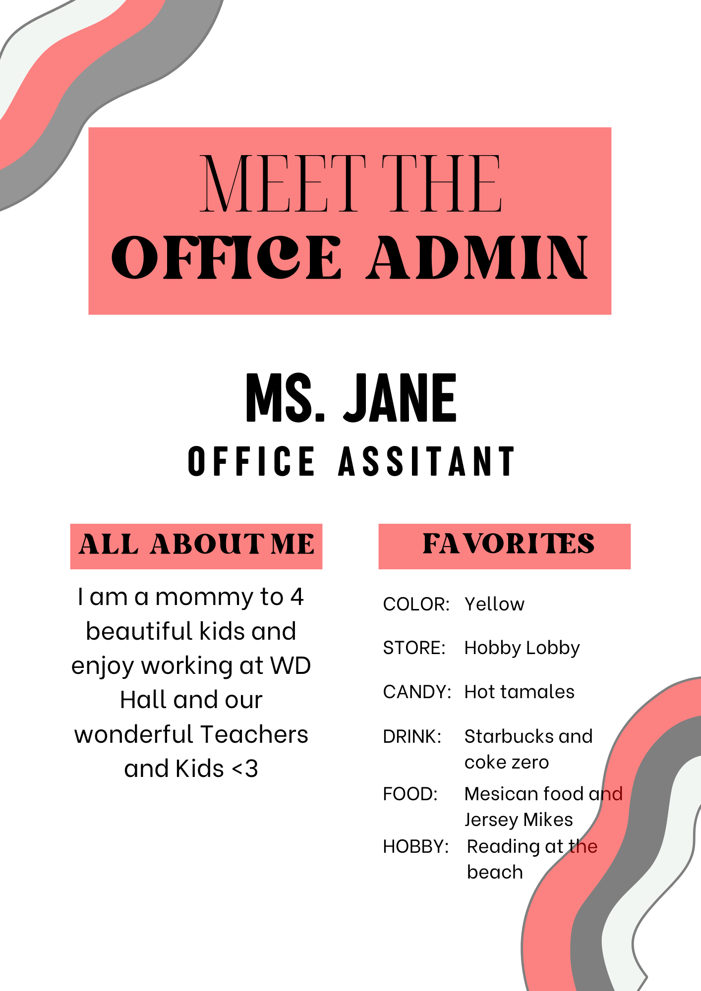 I have been working at WD Hall as the office manager for the past two years. Prior to that, I was the office assistant here for eleven years.  Back when my three children attended Hall, I started out here working noon duty.  After that, I worked in the health office as the health aid. I've also worked at Home School, long-term subbed in the office at Anza and subbed at various other schools, but I was so happy to be able to come back to Hall.  I absolutely love the families that make up the Hall community and feel privileged to help out such a fantastic group of teachers and staff!